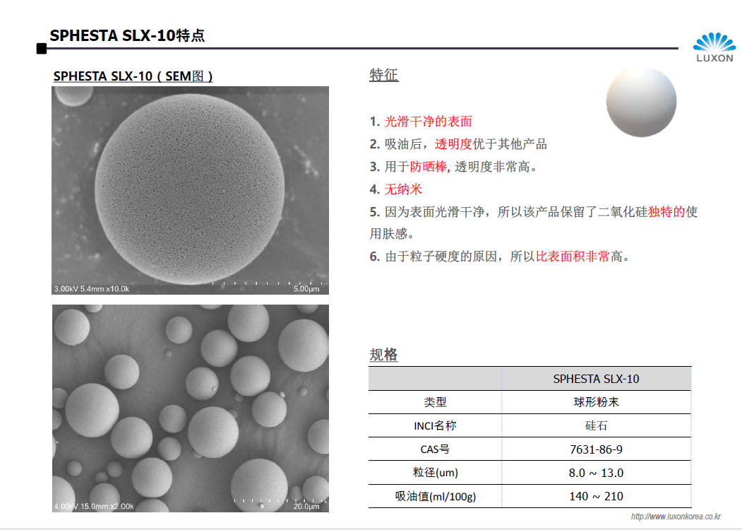 This product, as seen in the SEM image, is a silica powder with a very clean surface and a very high BET value when compared to ordinary silica. When added to oil compositions, the small pore size provides for a very translucent result.